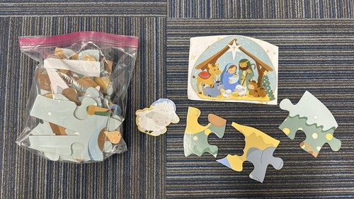 This puzzle shows Jesus’ birth. Show me where Jesus’ picture is. Praise God! Jesus was born! Jesus is God’s Son who came to earth to save us from sin.