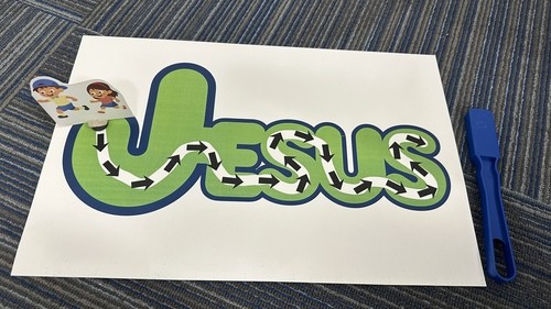 While the kids are outside for the obstacle course activity or watering the plants, have Addie or Corbin come in and hide the mini Jesus figures around the class. Remind them not to hide them TOO well. Then have the kids come back in and find them.