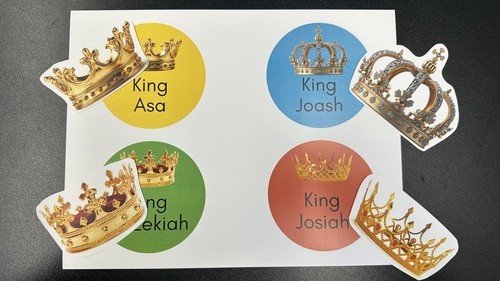 In this game we placed jewels on a crown. Who wears crowns? [Allow responses.] Yes! Kings wear crowns. Judah was ruled by kings. Today we are learning about Judah’s good kings. Judah’s good kings worshiped God. These kings helped the people of Judah know what was right. The good kings of Judah led the people to worship God and follow Him.