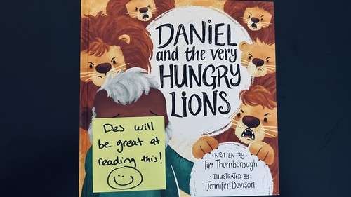 Wow you roared really loud like a lion! Daniel was thrown in a lions’ den because he would not pray to the king and would only pray to God. God sent an angel to shut the lions’ mouths. Daniel trusted God, and God protected him. When we trust in Jesus, He saves us from our sins and gives us life with God forever.