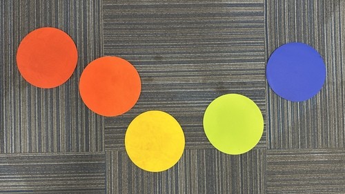 Lay the circles on the ground, close enough to each other that the kids will be able to go from one circle to the other. Tell the kids “follow me!” as you over the circles. Keep moving the circles, saying “follow me!” and playing as long as the kids have interest.