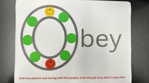 Each child can have 2 smiley face stickers and then feel free to use up what is left of the green stickers to fill up their “O” for Obey.